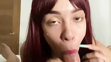 "ASMR blowjob from beauty Dolores_Ham. Cute redhead girl sucks cock close-up."