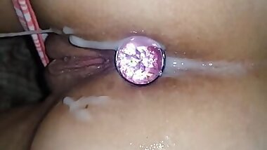 We play a daring game and I fuck my friend in the living room with my new dildo