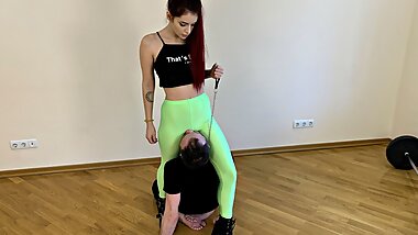 "Rough Pussy Worship and Face Slapping Femdom with Cruel Mistress Sofi in Green Leggings"