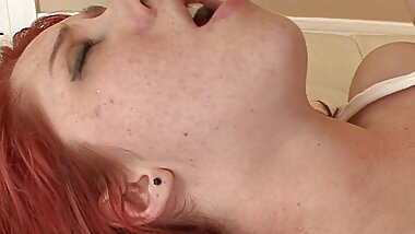 "Red head hottie Lisa in seamless pantyhose spreading and showng pussy and ass"