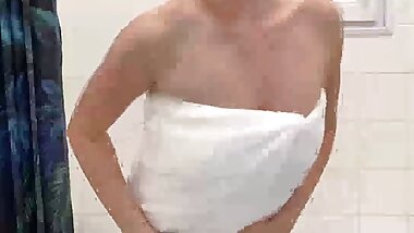 Cute BBW with big boobs teases with hand motions and plays with her plump nipples