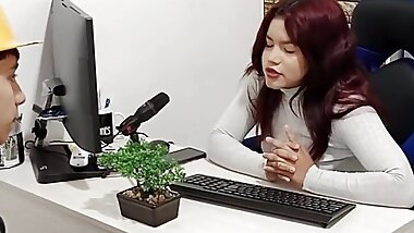Cartoon girl jerks off and sucks her good friend's big cock until he cums white sperm