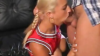 "Cute bitch has fun with two guys who fuck her cunt and fill her face with cum"