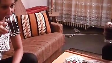 "A small titted German babe gets her mouth filled in front of her boyfriend"