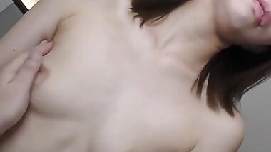 "Hot girl lowers her little pussy on guys cock and he rubs on her little tits"