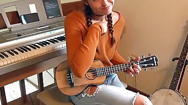 "Kinky teen! She blows her stepbrother and then teases him by fucking herself!"