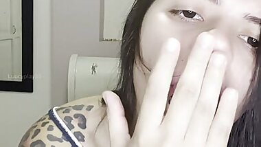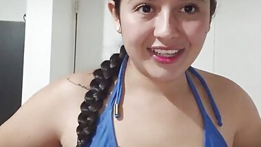 "ASMR moans - Colombian Sexy Teen fucks herself with realistic Dildo till STRONG ORGASM"
