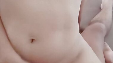 "Girl in white stockings jerked off her boyfriend with gentle hands with a pink manicure"