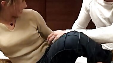 Mature Couple caught petite Teen Babysitter and seduce her to old young FFM 3Some Sex