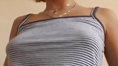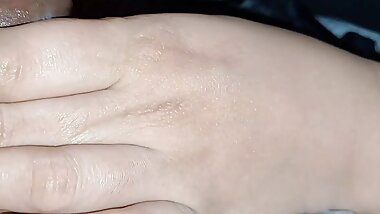"A brunette babe from Germany pleasing her tight muff before sucking a cock "