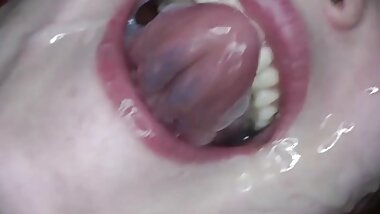 "Horny teen getting her tight pussy stretched out really good taking cum in her mouth "