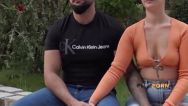 "Guy likes to watch his girlfriend sucking stranger's big cock while he fucks her hard"