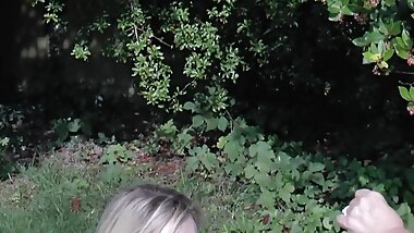 "Blonde teen get all holes smashed by a older man outside while she licks a sexy MILF"