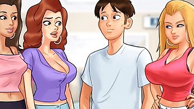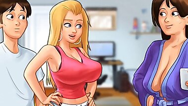 "Cute teen Kara Mynor loves to have the neighbors over, especially two guys"