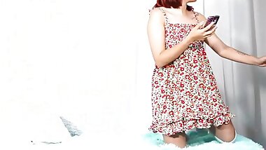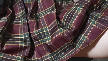 Schoolgirl in red panties masturbates after school while parents are not at home