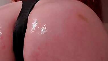 "Redhead fingering herself and playing with a vibrator while watching porn."