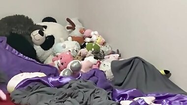 "Slut stepdaughter shamelessly masturbates in the living room while her parents home"