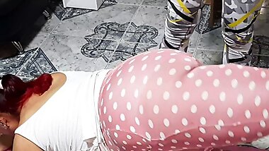 "Security man fucks the horny bitch from the store who wanted to escape on roller skates"