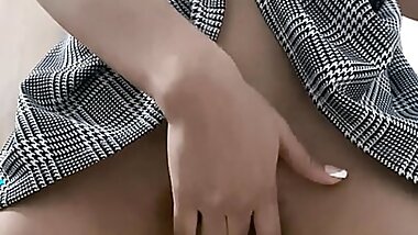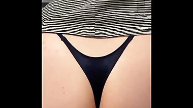 "Stroking His Cock From Behind While Wearing My Sexy Stockings! I Make a Mess of His Shirt"