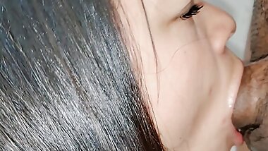 "Best Deep Blowjob from Sexy Wife with ball licking in amateur homemade video with cum in mouth"