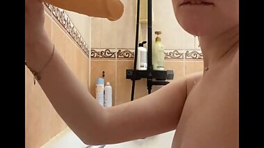 "Cute teen Karneli Bandi masturbate pussy and stretching ass with glass dildo"