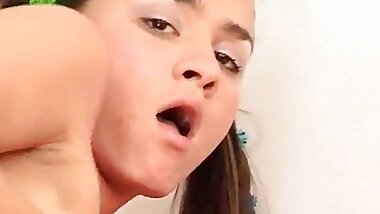 "Teen girl fucks with two dildos before Christmas! Double penetration and creampie"