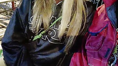 "Hottie redhead in public gets cum on her face after a good fuck her tight pussy"