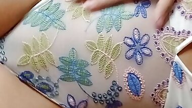 "Girl pissing. I really want to pee, striptease and peeing right through my panties"