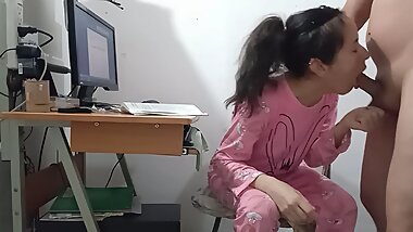 "Perverted stepdad surprises me masturbating, don't cum inside my pussy! fucking with the old man"
