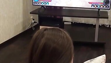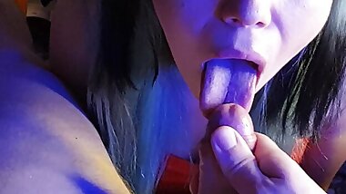 18 year old sucking the cum out of 44 year old dick while fucking her own pussy