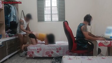 "friend fucks his nerdy friend's young girlfriend behind his back while he is on the gamer"