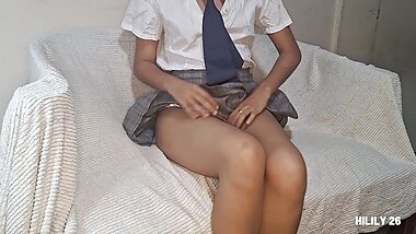 A young student in her school shirt, socks and panties plays with her pussy - bj, facial