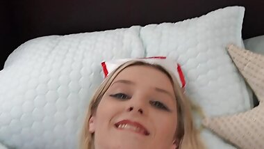 "Petite BLONDE SCHOOLGIRL masturbates & wets through her PANTYHOSE before lecyures"