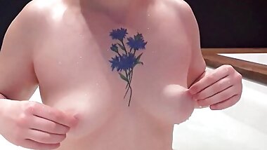 "Gentle nude striptease and masturbation with orgasm in the bathroom. Close-up"