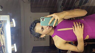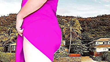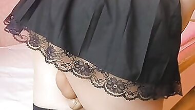 "Sexy ass Shemale spanks her own booty and huge balls so hard with a big dildo Thong sissy"