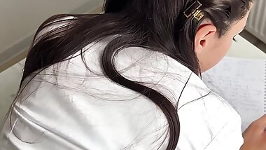Hot Brunette Enjoys Spoiling Threesome After Virgin Pussy Inspected by Doctor