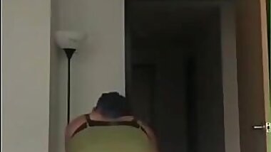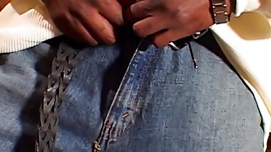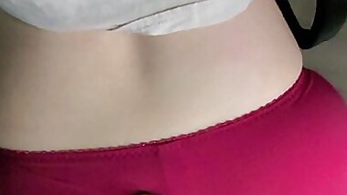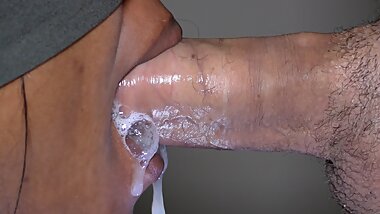 "Stroking His Cock From Behind While Wearing My Sexy Stockings! I Make a Mess of His Shirt"