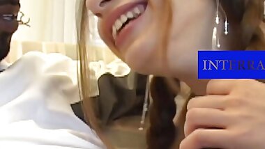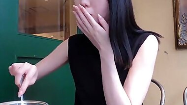 "Horny Asian woman with small jugs is completely pleased by this stud's gigantic salami - creampie!!"