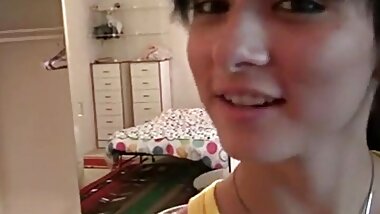 "Cute teen Karneli Bandi masturbate pussy and stretching ass with glass dildo"