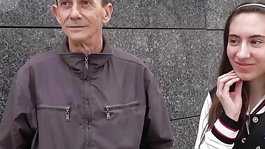 Mature Couple caught petite Teen Babysitter and seduce her to old young FFM 3Some Sex