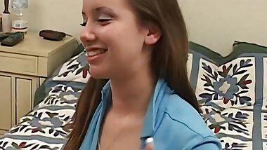 "Cute brunette teen likes to feel taste of good cigar before putting some slobber on the knobber"