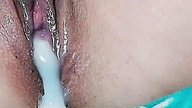 "Hot riding wet tight pussy in big cock cowgirl position after college close up."